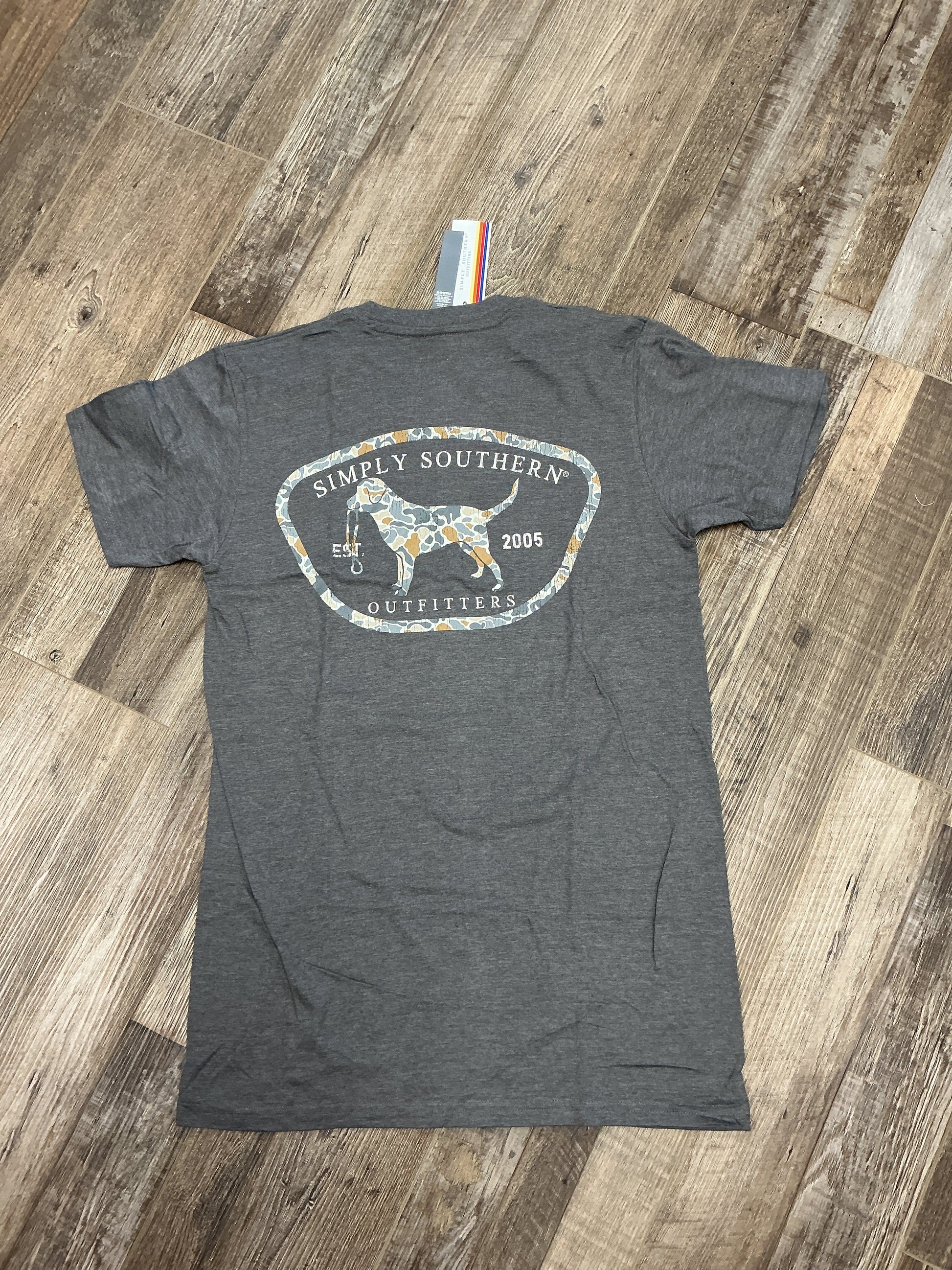 Elevate your style and share your love for camo with our Simply Southern Short Sleeve Tee! Made with soft grey fabric, this shirt features a cute camo dog design. Perfect for any casual occasion, show off your unique taste and love for camo with this must-have tee.